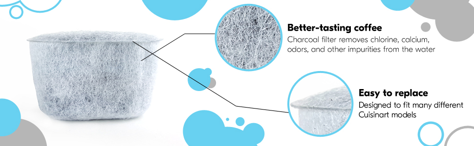 4.8 out of 5 stars. For use with all cuisinart coffee makers requiring a water filter including charcoal water filters. Ships free orders over $39. Removes chlorine, odors, calcium, and other water impurities prior to brewing. Charcoal water filters must be replaced periodically to keep coffee fresh and flavorful.